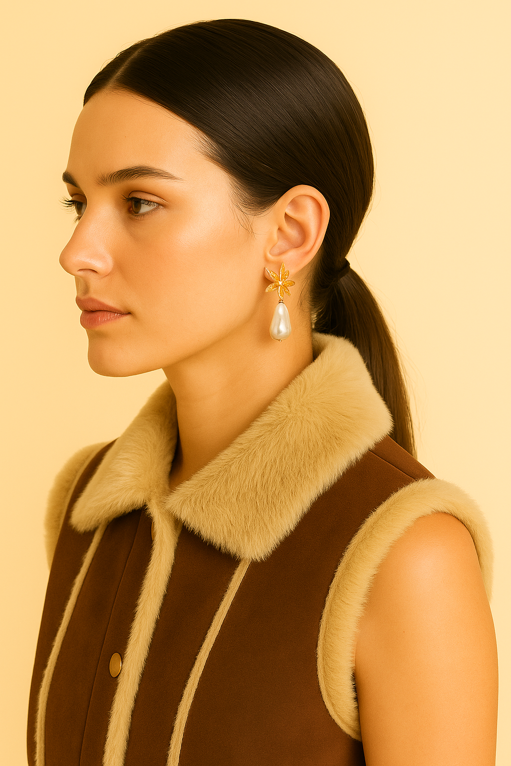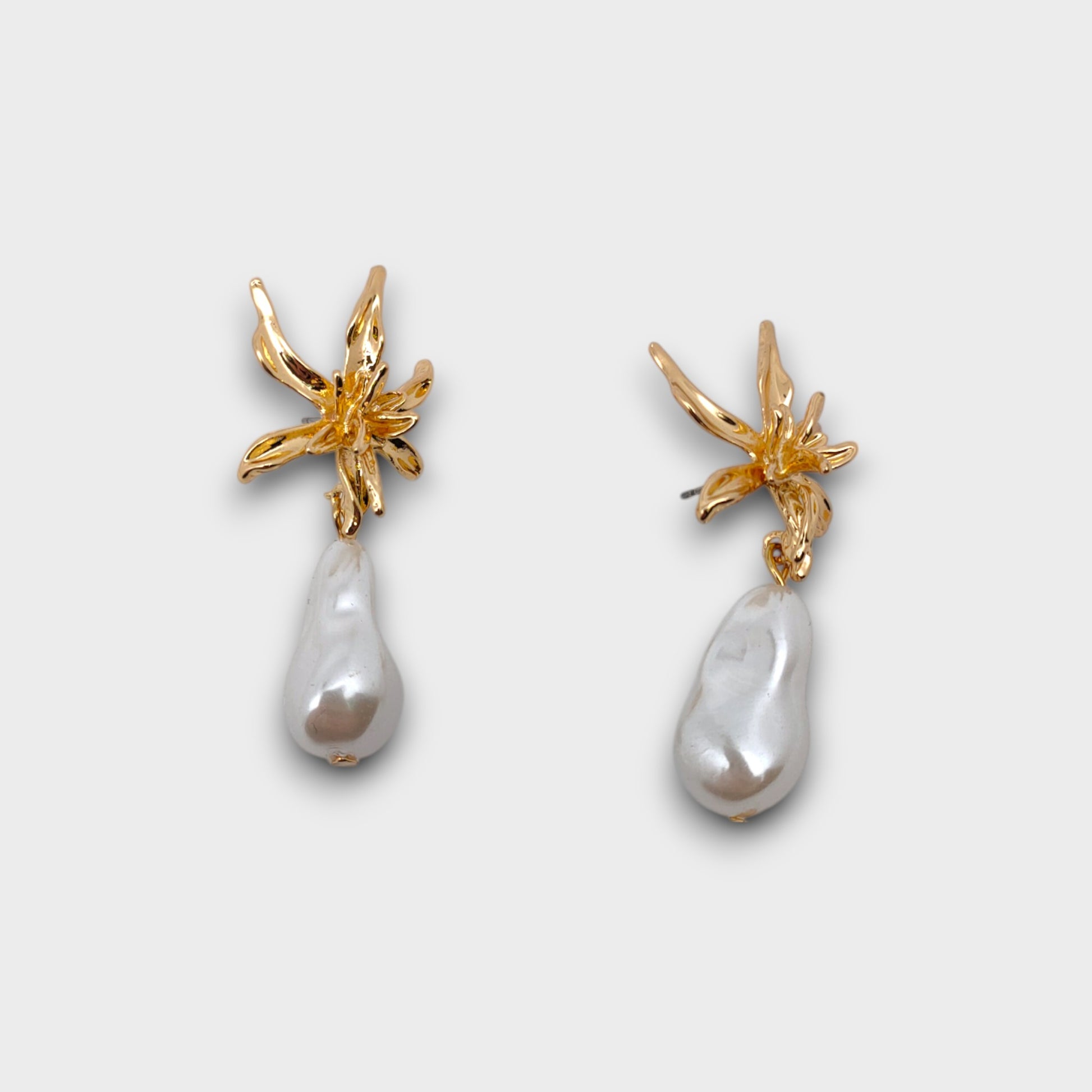 Orecchini "Fiore di Perla" – con petalo dorato e perla irregolare